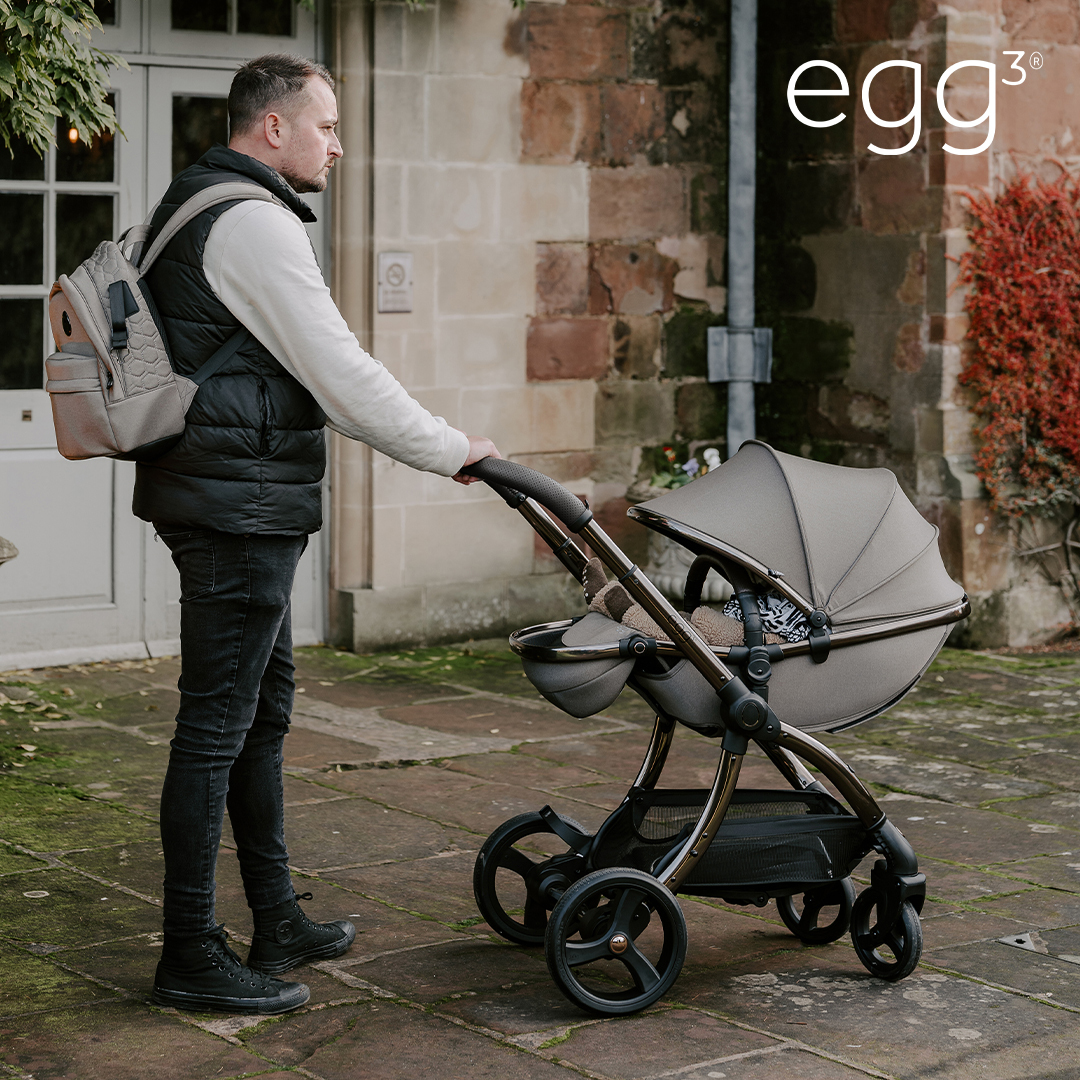 Featuring a ‘one-hand fold’ the egg3® chassis is compact when folded and free-stands, with the handle clear from the ground. It’s large puncture-free tyres feature a unique egg-shaped tread pattern, with the stroller leaving its mark wherever it goes. Engineered for comfort, superior handling and added durability, egg3® has been fitted with Tru-Ride® technology as standard for multi-terrain strolling.